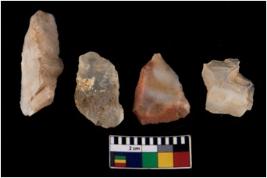 | Description / विवरण | There are n 4 of utilized worked cores. They show multidirectional irregular scar pattern. One is elongated in shape. |