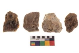 | Description / विवरण | There are n 4 utilized worked flakes; they show multidirectional irregular scar pattern on both dorsal and ventral face of the flakes.One is tapering at one end and having sharp edges. |