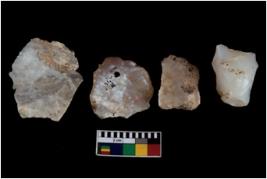 | Description / विवरण | There are n 4 of utilized worked cores. They show multidirectional irregular scar pattern. Three have flat base. |