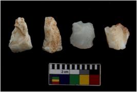 | Description / विवरण | There are n 4 of utilized worked cores. They show multidirectional irregular scar pattern. Two are tapering on one end and all have round base. |