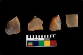 | Description / विवरण | There are n 4 of utilized worked cores. They show multidirectional irregular scar pattern. Three are tapering on one end and one is square in shape. |