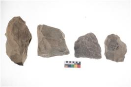 | Description / विवरण | These are n 4 of worked tools. They are tapering at one end and have sharp edges. Some have flat base and show dominant irregular scar pattern. |