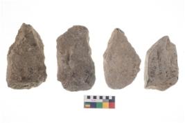 | Description / विवरण | These are n 4 of worked tools. They are tapering at one end and have sharp edges. Some have round base and some have falt base. They show dominant irregular scar pattern. |