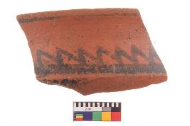| Description / विवरण | Specimen of potsherd with black decorative painting, Type Black on Red Ware . |
