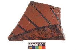 | Description / विवरण | Specimen of potsherd with black decorative geometric Set of two zigzag bands painting, Type Black on Red Ware . |