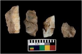 | Description / विवरण | There are n 4 of utilized worked cores. They show multidirectional irregular scar pattern. Three are tapering on one end and have sharp edges. |