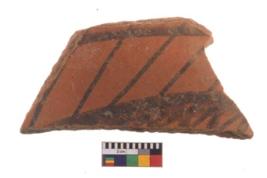 | Description / विवरण | Specimen of potsherd with decorative geometric painting, Type Black on Red ware . |