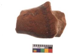 | Description / विवरण | Specimen of potsherd with traces of decorative geometric painting, Type Black on Red ware . |