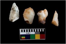 | Description / विवरण | There are n 4 of utilized worked cores. They show multidirectional irregular scar pattern. Two are tapering on one end. |