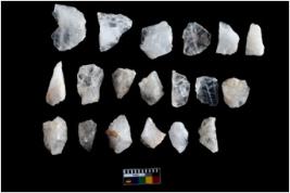 | Description / विवरण | There are n 25 flakes; among them 17 are made up of quartz and 8 are made up of chert. Some are tapering at one end.All are having sharp edges. |