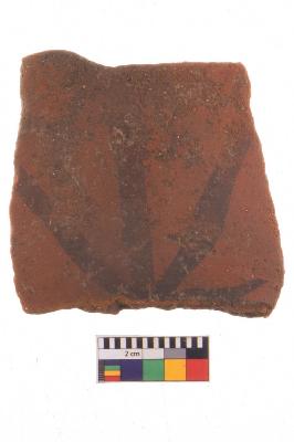 | Description / विवरण | Specimen of potsherd with black decorative painting, Type Black on Red Ware . |