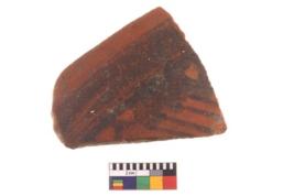 | Description / विवरण | Specimen of potsherd with decorative geometric painting, Type Black on Red ware . |