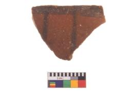 | Description / विवरण | Specimen of potsherd with traces of decorative geometric painting, Type Black on Red ware . |