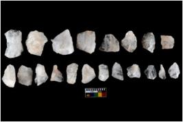 | Description / विवरण | There are n 25 flakes; among them 17 are made up of quartz and 8 are made up of chert. Some are tapering at one end.All are having sharp edges. |