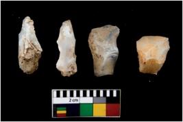 | Description / विवरण | There are n 4 of utilized worked cores. They show multidirectional irregular dominant scar pattern. Two have flat base. |