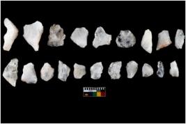 | Description / विवरण | There are n 25 flakes; among them 17 are made up of quartz and 8 are made up of chert. Some are tapering at one end.All are having sharp edges. |