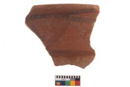 | Description / विवरण | Specimen of potsherd with traces of decorative geometric painting, Type Black on Red ware . |