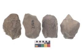 | Description / विवरण | These are n 4 of worked tools. They are tapering at one end and have sharp edges. Some have round base and show dominant irregular scar pattern. Some have broken tip. |
