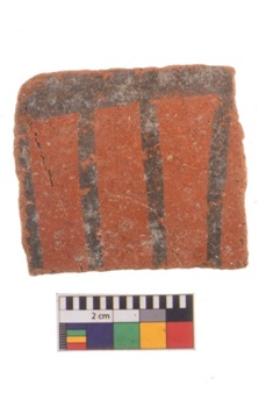 | Description / विवरण | Specimen of potsherd with decorative geometric painting, Type Black on Red ware . |