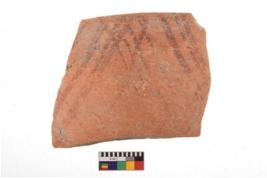 | Description / विवरण | Specimen of potsherd with decorative geometric painting. Type Red on Red Ware . |