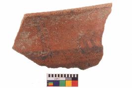 | Description / विवरण | Specimen of potsherd with black decorative geometric Linear painting, Type Black on Red Ware . |
