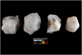 | Description / विवरण | There are n 25 flakes; among them 17 are made up of quartz and 8 are made up of chert. Some are tapering at one end.All are having sharp edges. |