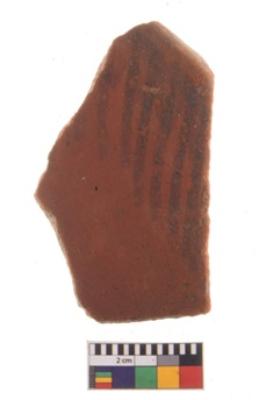 | Description / विवरण | Specimen of potsherd with traces of decorative geometric painting, Type Black on Red ware . |