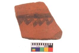 | Description / विवरण | Specimen of potsherd with black decorative geometric Linear painting, Type Black on Red Ware . |