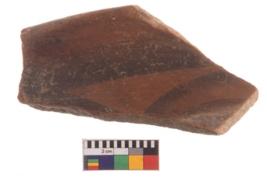 | Description / विवरण | Specimen of potsherd with decorative geometric painting, Type Black on Red ware . |