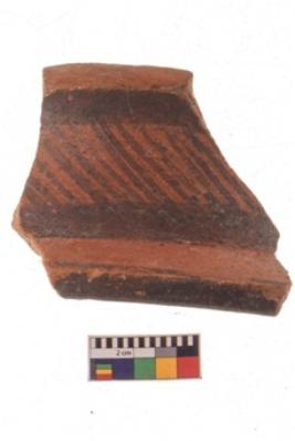 | Description / विवरण | Specimen of potsherd with black decorative geometric painting. |