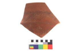 | Description / विवरण | Specimen of potsherd with traces of decorative geometric painting, Type Black on Red ware . |