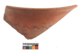 | Description / विवरण | Specimen of potsherd with traces of decorative geometric painting, Type Black on Red ware . |