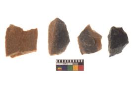 | Description / विवरण | There are n 4 utilized worked flakes; they show multidirectional irregular scar pattern on both dorsal and ventral face of the flakes.One is tapering at one end and having sharp edges. |