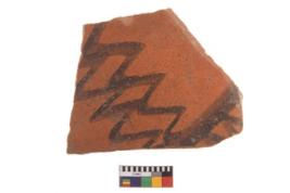 | Description / विवरण | Specimen of potsherd with decorative geometric painting, Type Black on Red ware . |