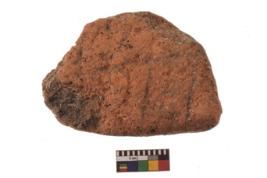 | Description / विवरण | Specimen of a portion of a terracotta disc; it is irregular at the circumference and having smooth surface with incised marks. |