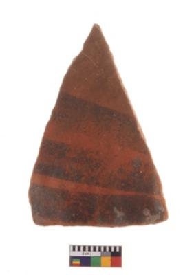 | Description / विवरण | Specimen of potsherd with decorative geometric painting, Type Black on Red ware . |