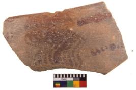 | Description / विवरण | Specimen of potsherd with decorative geometric painting. Type Red on Red Ware . |