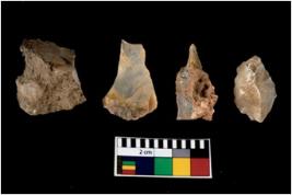 | Description / विवरण | There are n 4 of utilized worked cores. They show multidirectional irregular scar pattern. Two are tapering on one end and have sharp edges. |