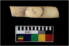 | Description / विवरण | Fragment of a decorated bangle. It is creamish in colour and rectangular in cross section. |