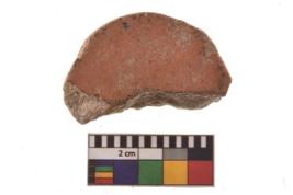 | Description / विवरण | Specimen of a portion of a terracotta disc; it is irregular at the circumference and having smooth surface. |
