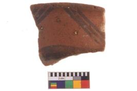 | Description / विवरण | Specimen of potsherd with decorative geometric painting, Type Black on Red ware . |