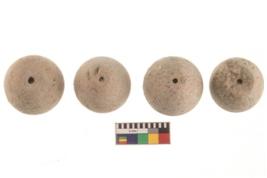 | Description / विवरण | Specimen n 4 having arecanut shape; smooth reddish surface, tubular perforation. They are circular in cross-section. |