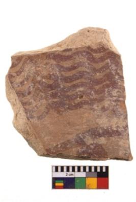 | Description / विवरण | Specimen of potsherd with decorative geometric painting. Type Black on Red Ware . |