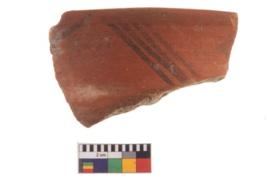 | Description / विवरण | Specimen of potsherd with decorative geometric painting, Type Black on Red ware . |