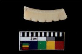 | Description / विवरण | Fragment of a decorated bangle. It is creamish in colour and rectangular in cross section. |