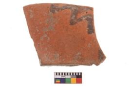 | Description / विवरण | Specimen of potsherd with traces of decorative geometric painting, Type Black on Red ware . |