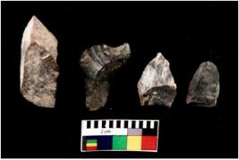 | Description / विवरण | There are n 4 of utilized worked cores. They show multidirectional irregular scar pattern and three are tapering on one end. |