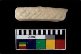 | Description / विवरण | Fragment of a decorated bangle. It is creamish in colour and rectangular in cross section. |