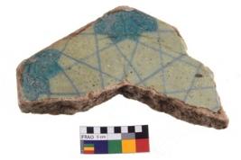 | Description / विवरण | Fragment of a China ware; the surface is painted in geometric pattern in blue with floral motifs. |