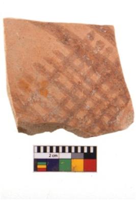 | Description / विवरण | Specimen of potsherd with decorative geometric painting. Type Black on Red Ware . |